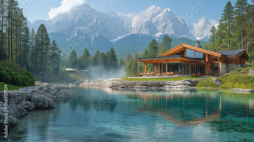 © Janis Smits, Fototapeta premium Beautiful pool and beautiful house.