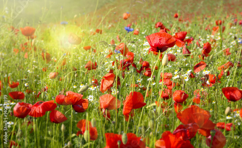 © Swetlana Wall, Fototapeta premium Beautiful poppy and daisies field .