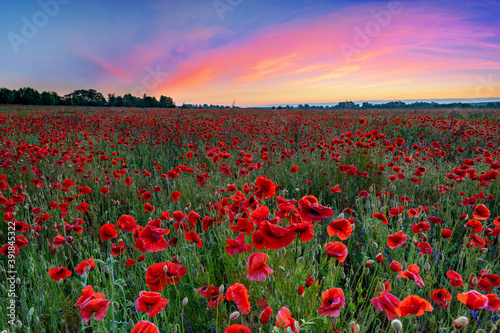 © Piotr Krzeslak, Fototapeta premium Beautiful poppy field during sunset