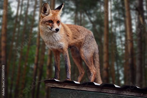 Fototapeta premium Beautiful portrait of a red face on a forest background black background