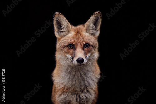 © di_ryan, Fototapeta premium Beautiful portrait of a red face on a forest background black background