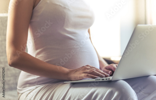© VadimGuzhva, Naklejka premium Beautiful pregnant woman at home