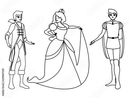 © djvstock, Fototapeta premium beautiful princess with princes of tales characters