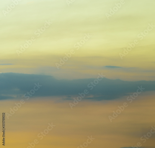 Obraz premium Beautiful puffy clouds at sunset isolated against pastel blue skies