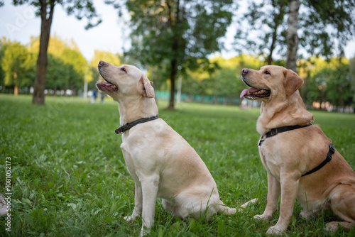© shymar27, Obraz premium Beautiful purebred Labrador Retriever on a walk outdoors.