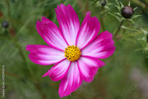 © leomalsam, Fototapeta premium Beautiful purple cosmos flower on dark background