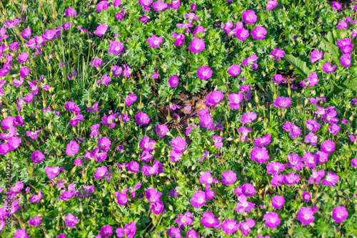 Naklejka premium Beautiful purple flowers of Geranium sanguineum. bloody crane's-bill, bloody...