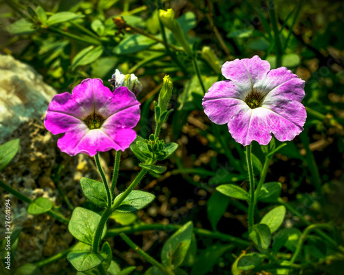 Fototapeta premium Beautiful purple Geranium Flowers in the garden.with green background.