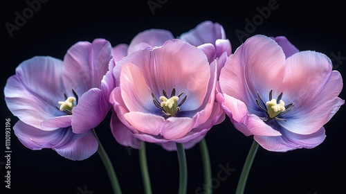 Fototapeta premium Beautiful purple tulips arranged elegantly against a dark background...