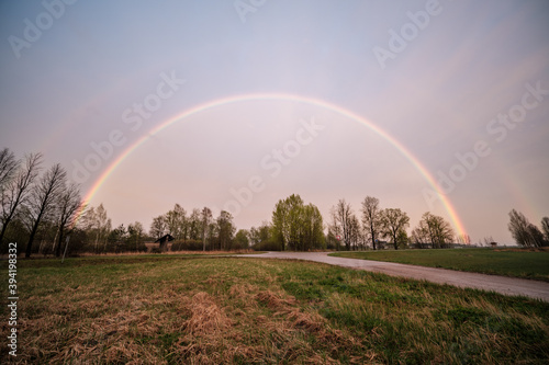 © Martins Vanags, Naklejka premium beautiful rainbow above countryside roads