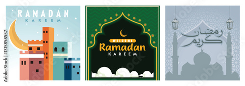 Fototapeta premium Beautiful Ramadan Kareem designs featuring Islamic art and festive illustrations.