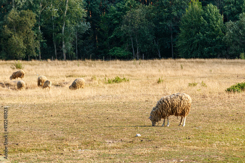 © Minakryn Ruslan , Obraz premium Beautiful rams graze on the farm