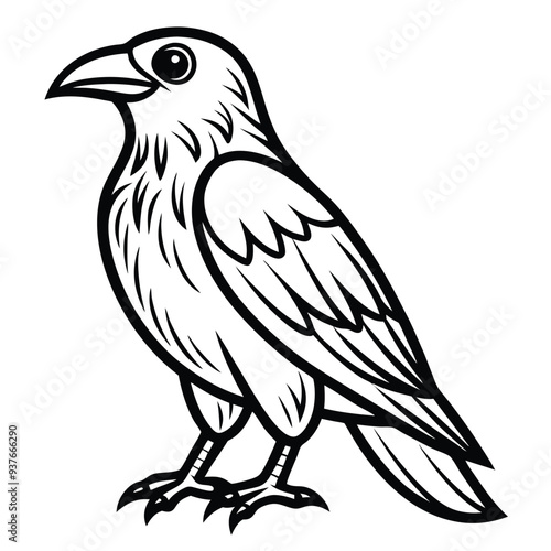 Fototapeta premium Beautiful Raven Crow Vector Illustration – Dark Bird Silhouette Art for Gothic, Nature, Halloween, and Fantasy Projects with Bold Black Feathers and Elegant Profile