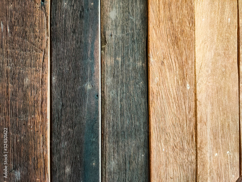 © Bhubeth, Fototapeta premium Beautiful real dark wood texture background and high surface detail in the vertical line