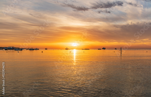 Obraz premium Beautiful red and orange sunrise over the sea.