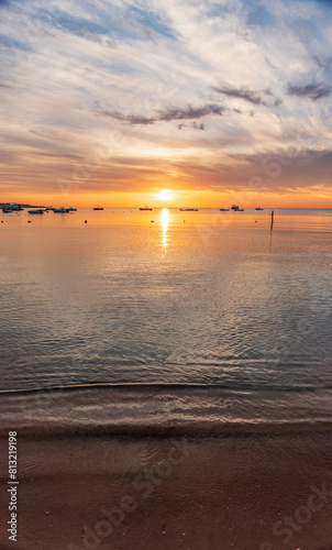 Fototapeta premium Beautiful red and orange sunrise over the sea.