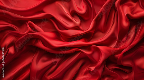 © Jess rodriguez, Obraz premium beautiful red fabric texture close up with waves