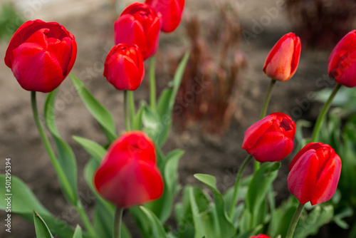 Obraz premium Beautiful red flowers - tulips. Spring, summer, beauty, nature