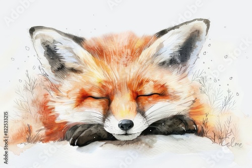 Fototapeta premium Beautiful red fox - watercolor.. Beautiful simple AI generated image in 4K,...