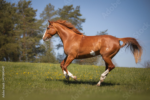 © julia_siomuha, Obraz premium Beautiful red horse galloping in the meadow