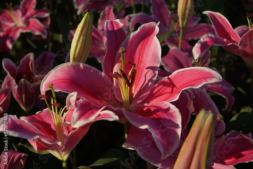 Fototapeta premium Beautiful red-pink lilies in the garden