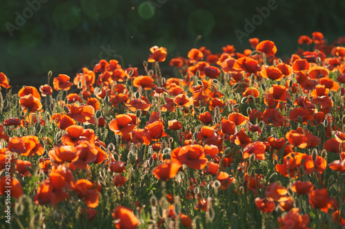 © Modella, Obraz premium Beautiful red poppies at the evening.