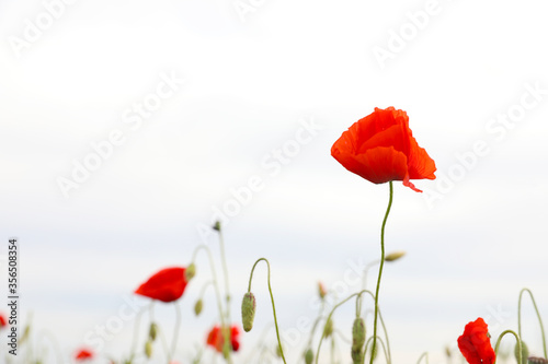 © New Africa, Obraz premium Beautiful red poppy flower growing in field, closeup