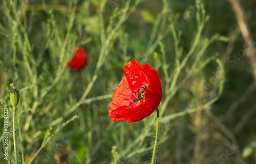 © Елена Климович, Obraz premium beautiful red poppy flowers on a field in summer