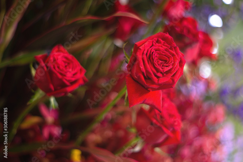 © Art789, Fototapeta premium Beautiful red rose flower as flowers background.