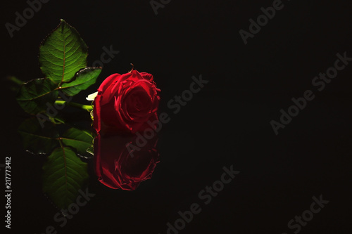 © New Africa, Fototapeta premium Beautiful red rose on black background. Funeral symbol