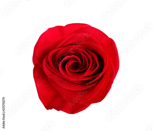© New Africa, Fototapeta premium Beautiful red rose on white background, top view. Perfect gift