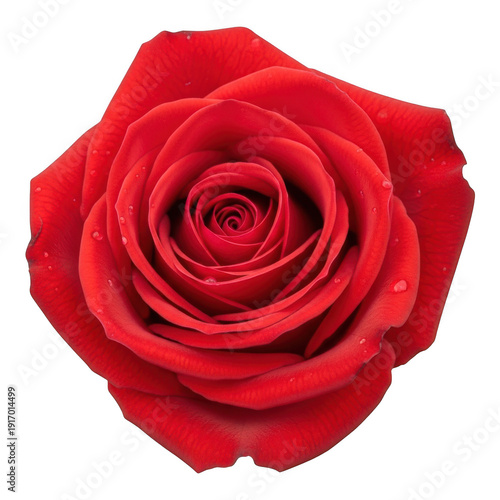 © Pixel, Naklejka premium Beautiful red rose with dew drops on petals isolated on transparent background
