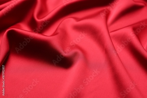 Obraz premium Beautiful red satin fabric as background, closeup view
