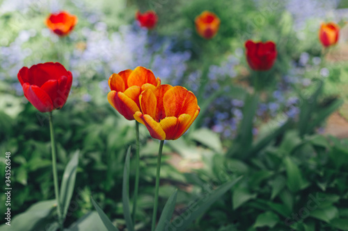 © Inna, Obraz premium Beautiful red tulips in a spring garden.