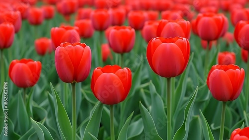 © Shibly Sadik, Obraz premium Beautiful red tulips in full bloom