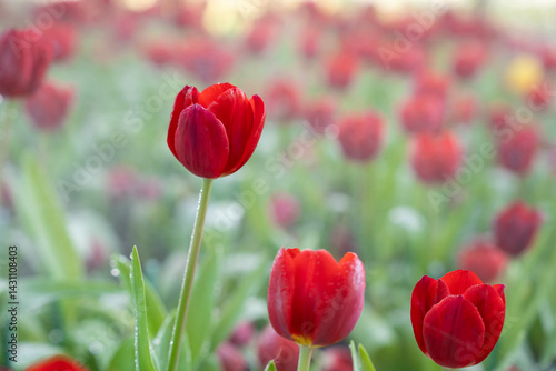 © gamjai, Obraz premium Beautiful red tulips plant in the garden.