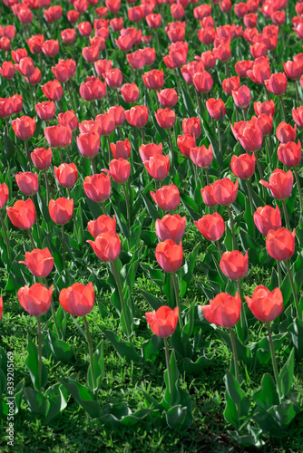 © Liu Lei, Fototapeta premium Beautiful red tulips swaying in the wind