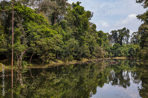 Fototapeta premium Beautiful reflections in the moat around Preah Khan temple in Siem Reap,...