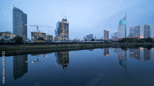 Naklejka premium Beautiful reservoir water reflecting skyscrapers