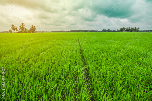 © Hermiadi, Fototapeta premium Beautiful Rice Field and Cloudy Sky