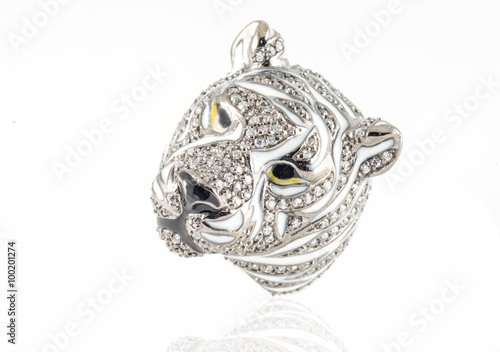 © rauf_ashrafov, Naklejka premium beautiful ring with gems and enamel isolated on white