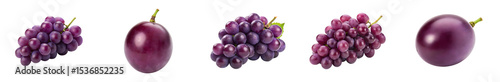 Fototapeta premium Beautiful ripe purple grapes, close-up studio shot transparent background...