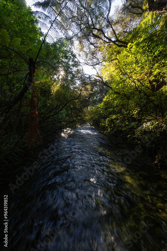 © AlexandraDaryl, Fototapeta premium Beautiful river covered by green tree.