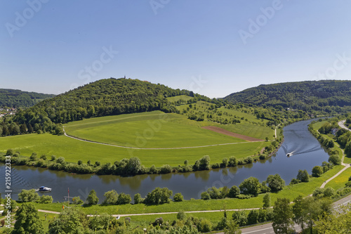 Obraz premium beautiful river Neckar in Neckarsteinach and Dilsberg