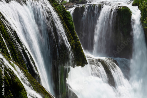 © .shock, Obraz premium Beautiful river waterfall landscape nature in summer clear water and forest.