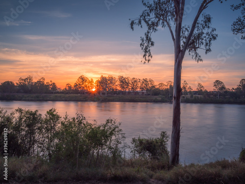 Obraz premium Beautiful Riverside Sunset with Reflections