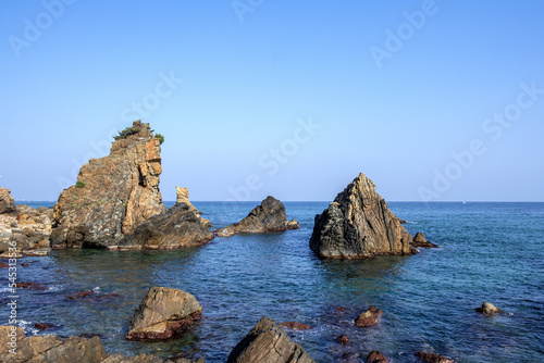 © Chongbum Thomas Park, Fototapeta premium Beautiful rock and bolders on the seashore along the coastline