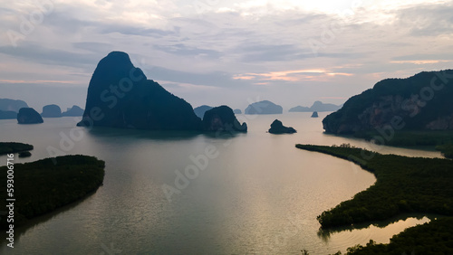 © Kooper, Naklejka premium Beautiful rocks in the ocean. Sunny dawn. Clouds in the sky. Beautiful morning water.