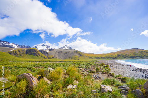 © zhu difeng, Naklejka premium beautiful rocky beach with penguins
