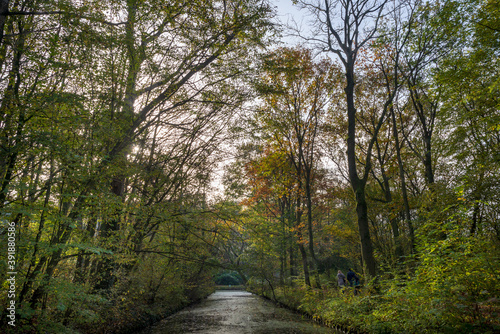 © zivko.trikic, Naklejka premium Beautiful romantic park with colorful trees and sunlight, autumn natural background, South Holland